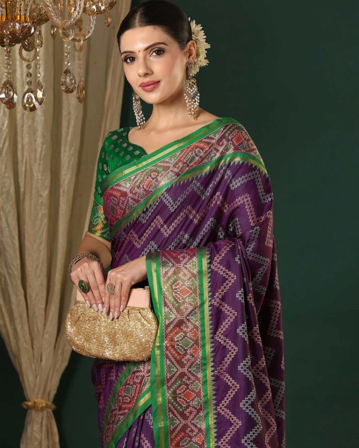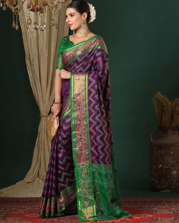Dark Purple Silk Patola Woven Saree