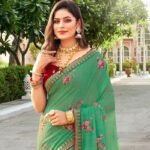 Be the first to review “Floral Embroidered Chiffon Saree in Green Color with Unstitched Blouse”